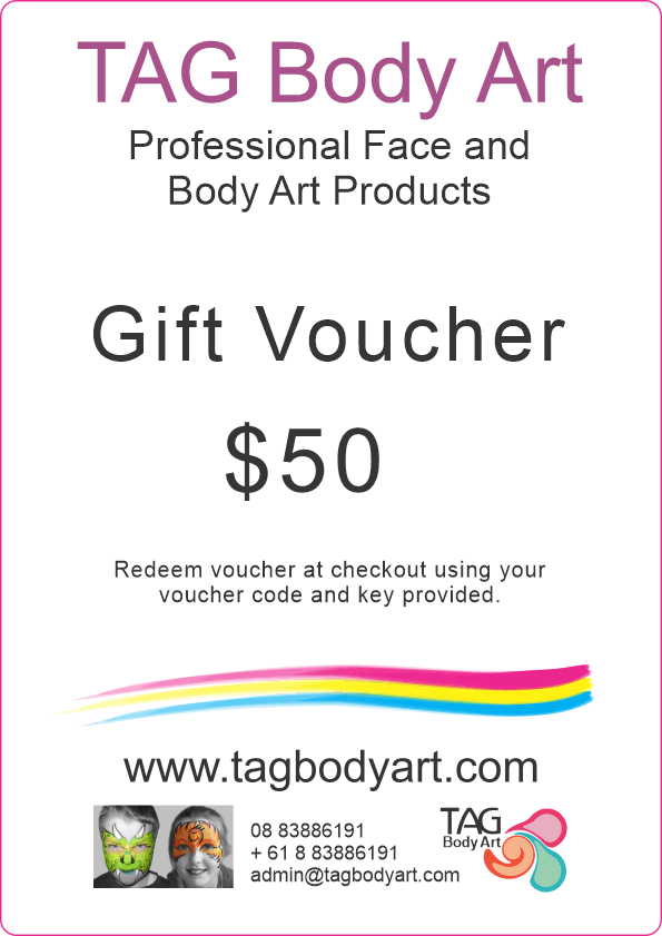 Enter the voucher code and secret key (provided on voucher) at the last stage of checkout on https://www.tagbodyart.com.
